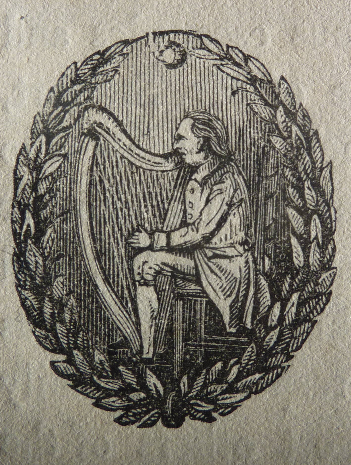 My favourite is the engraving of Arthur Ó Néill sitting playing the harp under a tree. Though it is crude and naïve in style, I think it gives us a good impression of his dress and hairstyle, and also some useful technical information on the size of his harp, and his hand position (note the left orientation). This engraving was found by F.J. Bigger, and published in the Ulster Journal of Archaeology XII, July 1906, p.100 A different engraving was printed by Charlotte Milligan Fox in her 1911 book Annals of the Irish Harpers. I presume it came from Bunting’s manuscripts which she owned at that time. The caption says it was by T. Smith, Belfast. I think you can see it is very similar to Bigger’s engraving above, and I do wonder if both were engraved seperately bu different artists, based on the same (lost) portrait. In his 1809 book The Ancient Music of Ireland, Edward Bunting included a small engraved portrait of Arthur Ó Néill. It's often assumed it is just a simplified line drawing from Smith’s engraving, but actually it looks to me to be a lot closer to Bigger’s engraving. Bunting also included a very small engraved portrait in the introduction of his 1840 book, however this is just a rather crude copy of the other engravings as a decorative title and I don’t think it has much value as a portrait. There is a loose sheet by, or associated with, Edward Bunting, which includes a couple of charming caricature sketches of Arthur Ó Néill. One is labelled “thinking”, and another is captioned “laughing or smiling” with a speech bubble “mick how does my coat fit me”. There is a reproduction of the drawing in Brian Audley, ‘Some Missing Items of the Bunting Collection, Rediscovered’,
