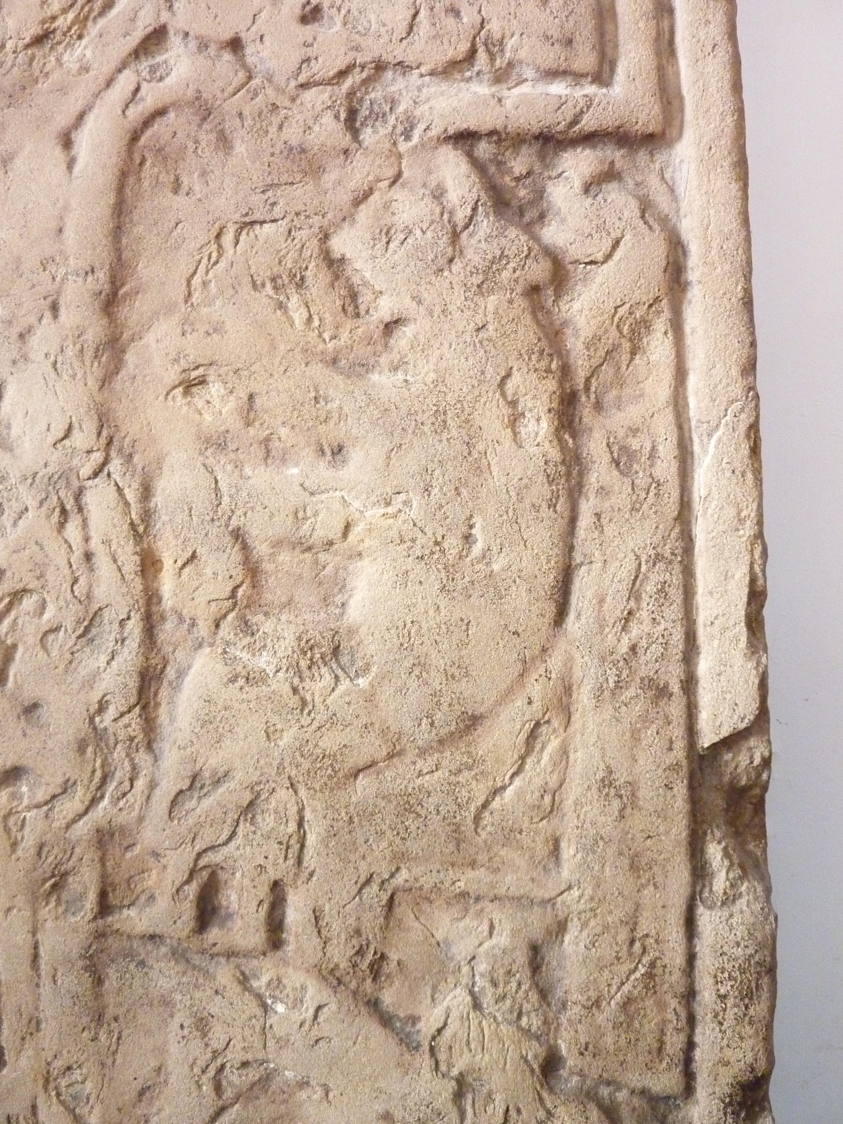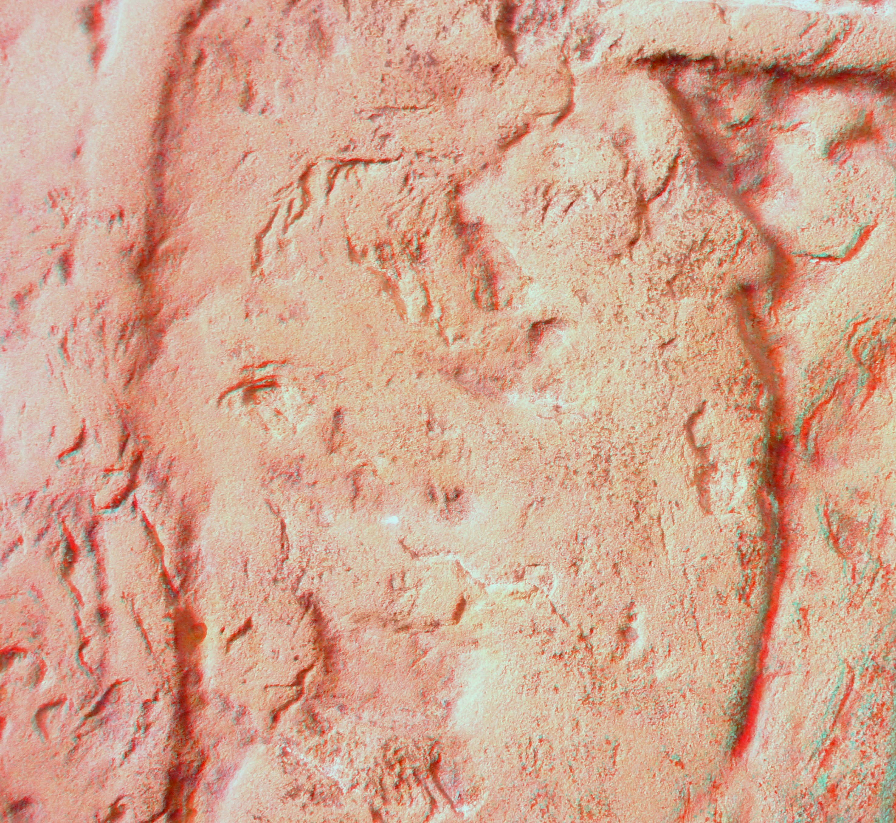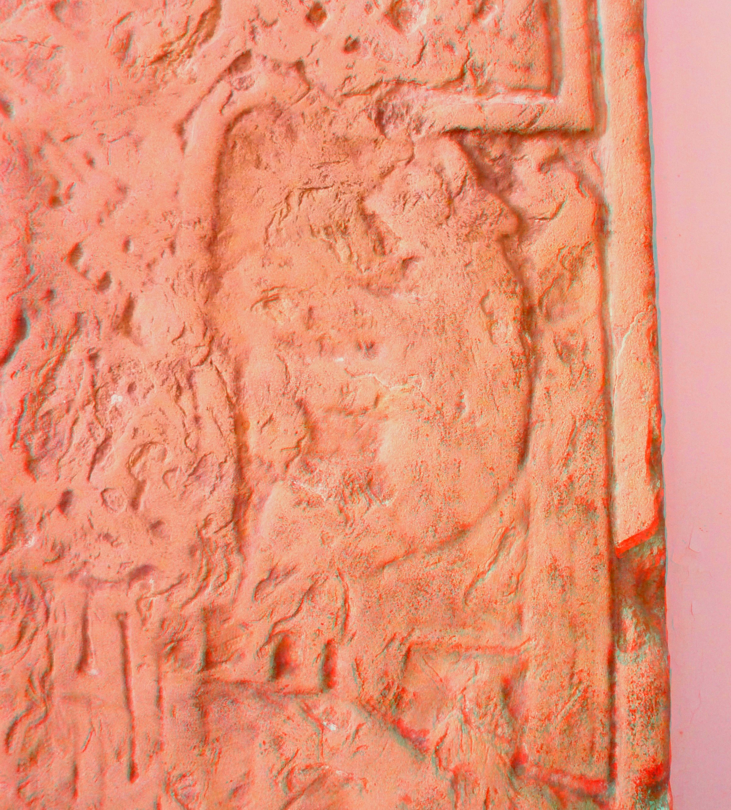 Crail, East Fife, Scotland. Inside the door of Crail church is a large Pictish cross-slab. It has a central high cross, and figures and animals filling the panels each side of the cross shaft. On the right side is a figure sitting in a high-backed char, holding an object in front of them. The slab used to be set in the floor so people walked over it and so the carving is very worn away. In the past, scholars have suggested the figure may be the Virgin & child, or King David playing the harp. I can see a figure-8 shaped object with a projection at the bottom, and I wonder if it is an early and rare example of a fiddle. Or, even more speculatively, and thinking of the depictions at Aberlemno & Gask, could it be an arched harp, held wth the bass strings closest to the player? ![]() Closeup 3D anaglyph of the possible musical instrument